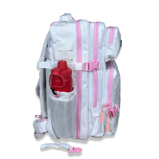 45L BOXFIT 'V3' BACKPACK WHITE in BABY PINK ACCENTS